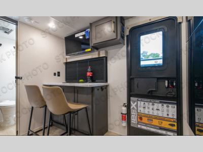 If you're looking for a couple's or solo travel trailer, this is the one! Once you arrive at the campground, you can unload the pass-thru storage, put out the 16' awning, and start lunch on the outside kitchen with a grill. The walk-thru bath is spacious and includes a spacious linen closet to keep dry towels close by. There is a theater seating slide out where you can relax each day, plus a bar top with two stools and a flip-up window for dining space. And the rear kitchen includes everything you need to cook meals when the weather isn't cooperating outside. When the optional Black Canyon Beast Mode Package is chosen on this model, you'll find an independent suspension, an additional 200-watt solar panel, totaling 400 watts of solar, a Maxxair vent cover and more!